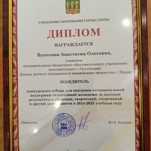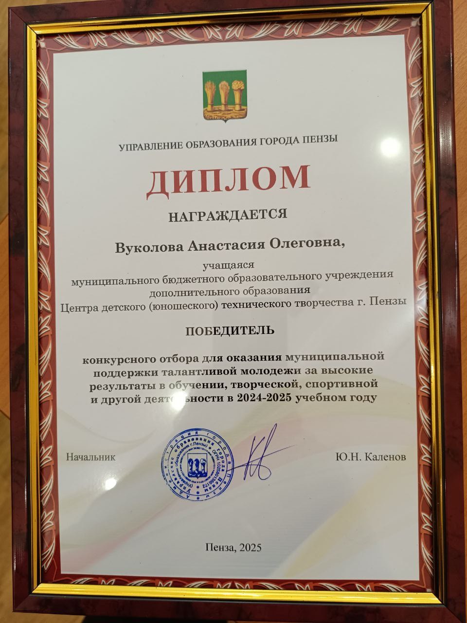 В итоге она стала победителем и была награждена дипломом за высокие результаты в обучении, творческой, спортивной и другой деятельности в 2024-2025 учебном году, а также денежным поощрением.