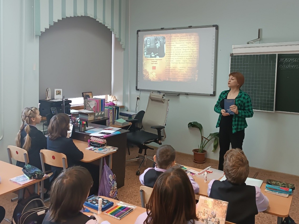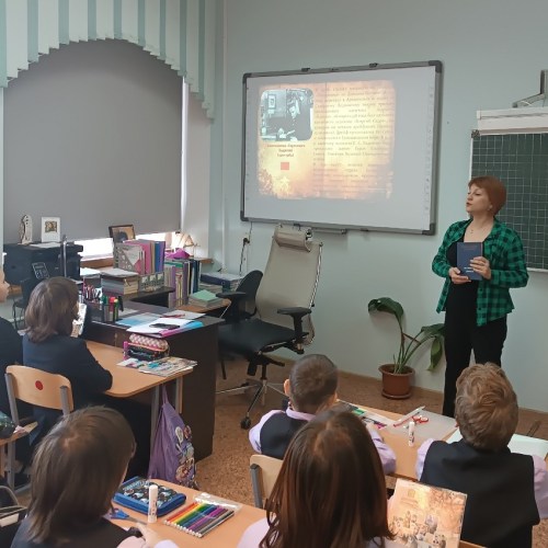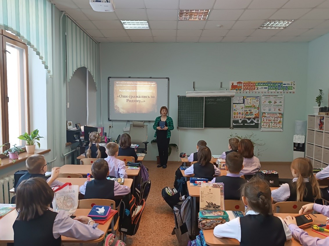 23 января руководитель музея «Морской и боевой Славы» ЦДЮТТ г. Пензы Царева А. Г. побывала в гостях у обучающихся начального звена МБОУ СОШ №49 с интерактивной экскурсией «Они сражались за Родину».