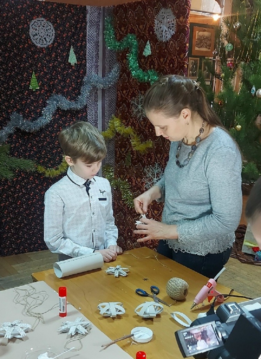 В стенах Краеведческого музея для учащихся Студии «Сокол» подросткового клуба «Гайдар» ЦДЮТТ г. Пензы (педагог-организатор Тарасов М.Ю.) прошел мастер-класс по народной новогодней игрушке.