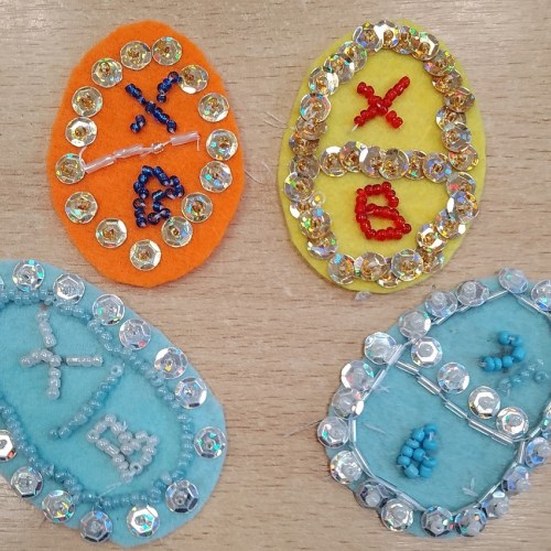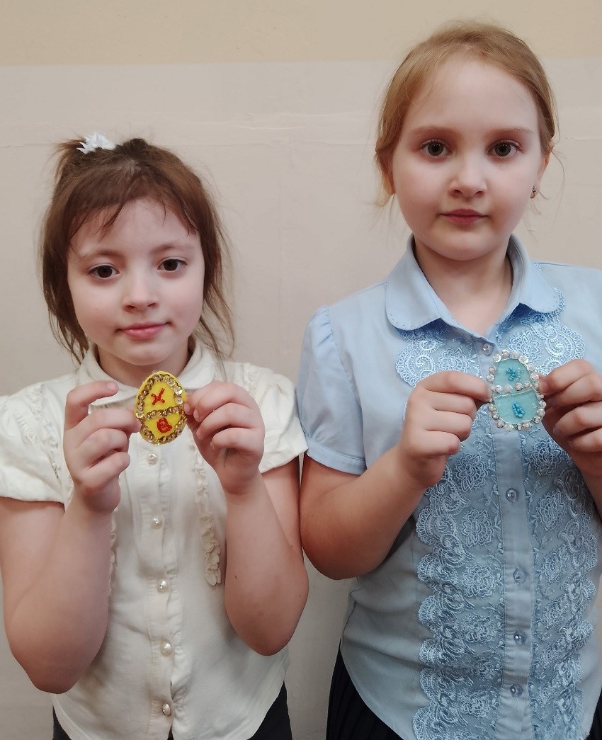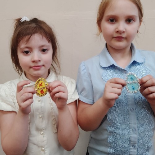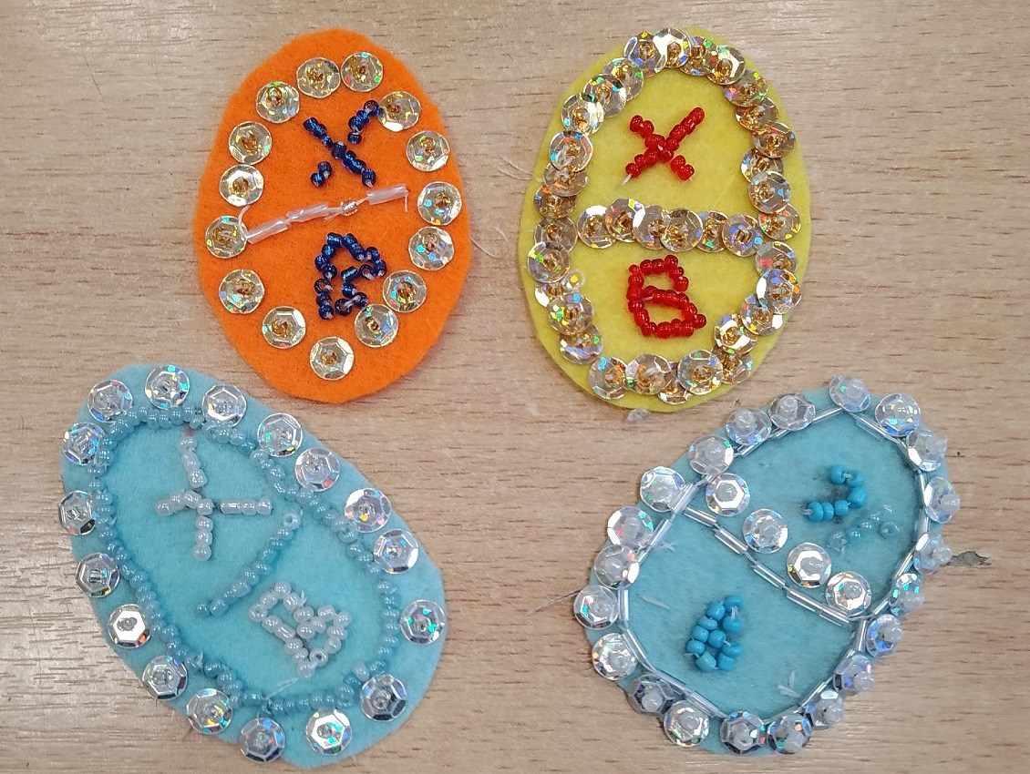 Второй мастер-класс посвящён празднику Пасха. Пасхальное яйцо ребята изготовили из разноцветного фетра, вышивали бисером, пайетками и бусинами. Все изделия получились яркими и праздничными.