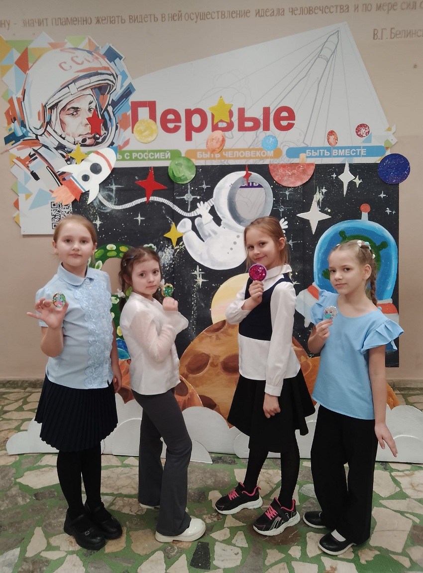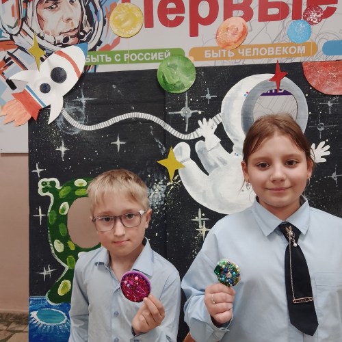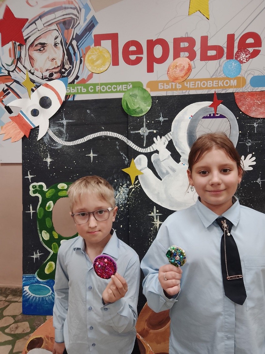 Первый, посвящённый Дню Космонавтики, называется «Планета». Во время вышивки планеты учащиеся использовали метод ассоциативно-образного мышления, у каждого получилась своя неповторимая планета.