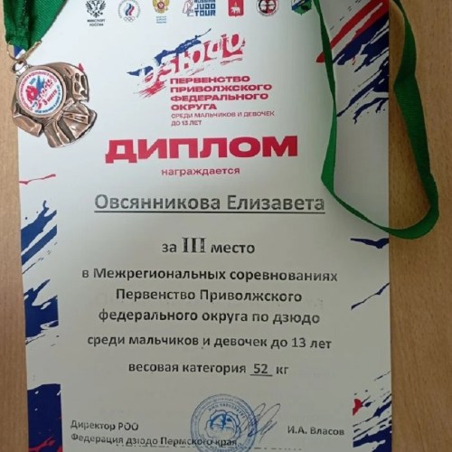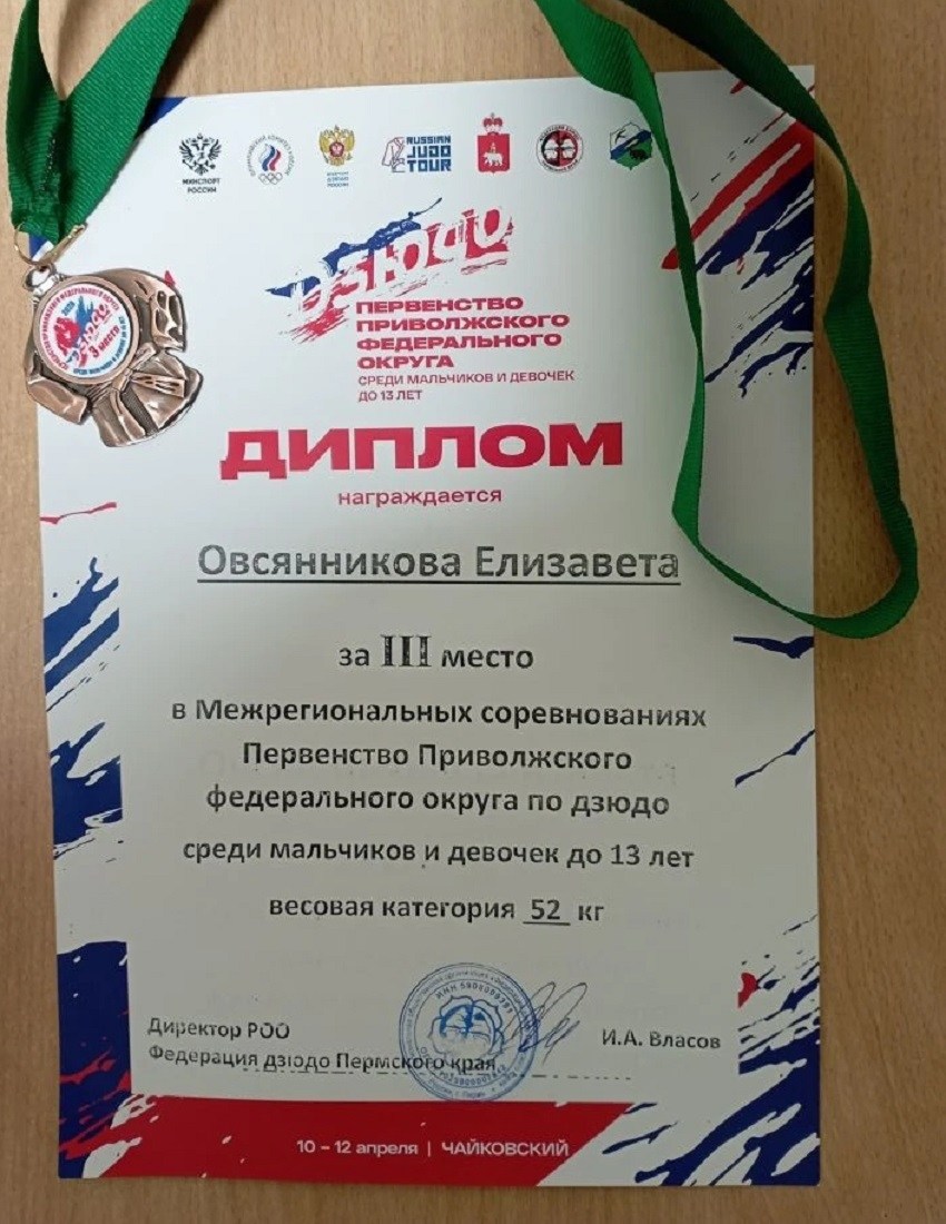 Учащаяся объединения «Дзюдо» ЦДЮТТ г. Пензы под руководством педагога дополнительного образования Батракова Вячеслава Евгеньевича - Овсянникова Елизавета стала бронзовым призёром соревнований, заняв 3 место в весовой категории 52 кг!