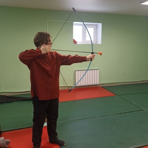 Во второй день, катались с горки на ватрушках и ледянках, тренировались в разборке-сборке автомата Калашникова, упражнялись в стрельбе из лука.