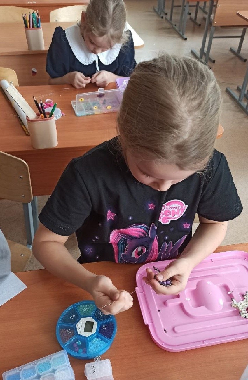 С ребятами поговорили об истории и значении этого праздника, и о том, что этот день является данью уважения всем поколениям воинов, от древних героев до современных защитников. На мастер-классах по бисероплетению учащиеся приготовили для своих пап и дедушек сувениры в виде танков и лошадок.
