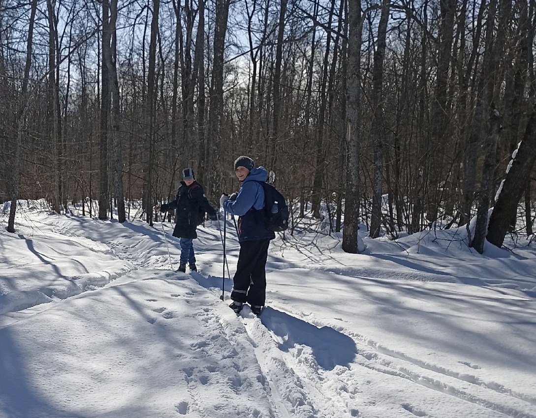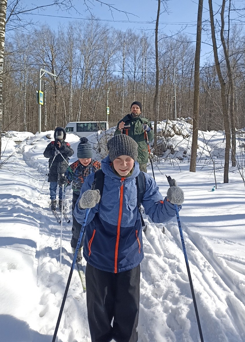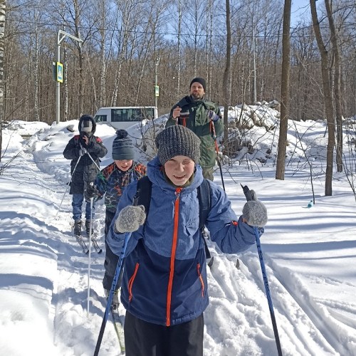 Ребята отрабатывали навыки: движение на лыжах, преодоление спусков и подъёмов. В середине пути остановились на перекус на горнолыжном склоне. В походе принимали участие и дети и родители, так что поход получился очень тёплым и дружным!