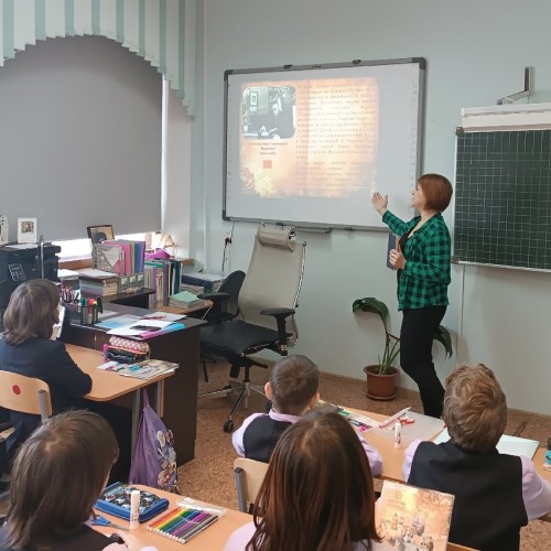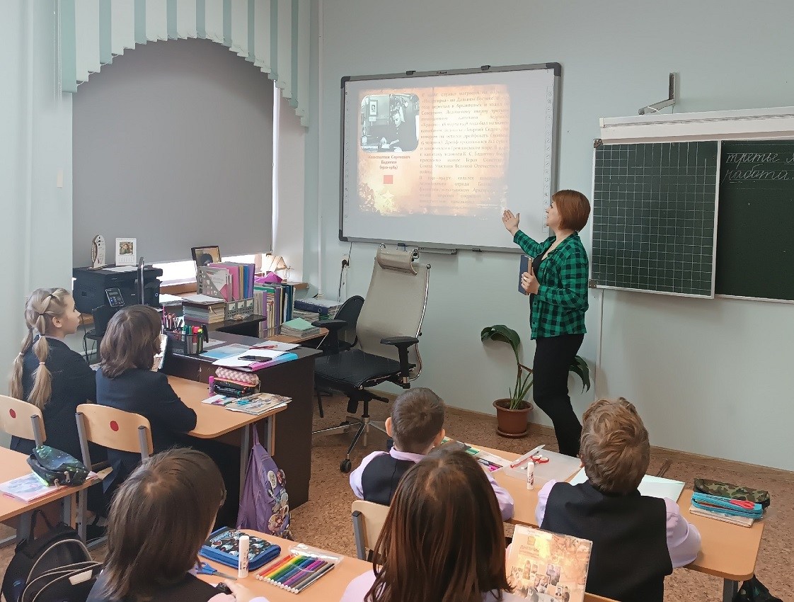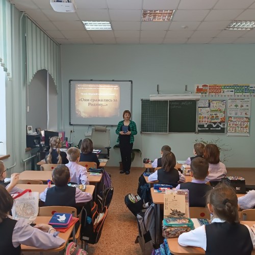 23 января руководитель музея «Морской и боевой Славы» ЦДЮТТ г. Пензы Царева А. Г. побывала в гостях у обучающихся начального звена МБОУ СОШ №49 с интерактивной экскурсией «Они сражались за Родину».
