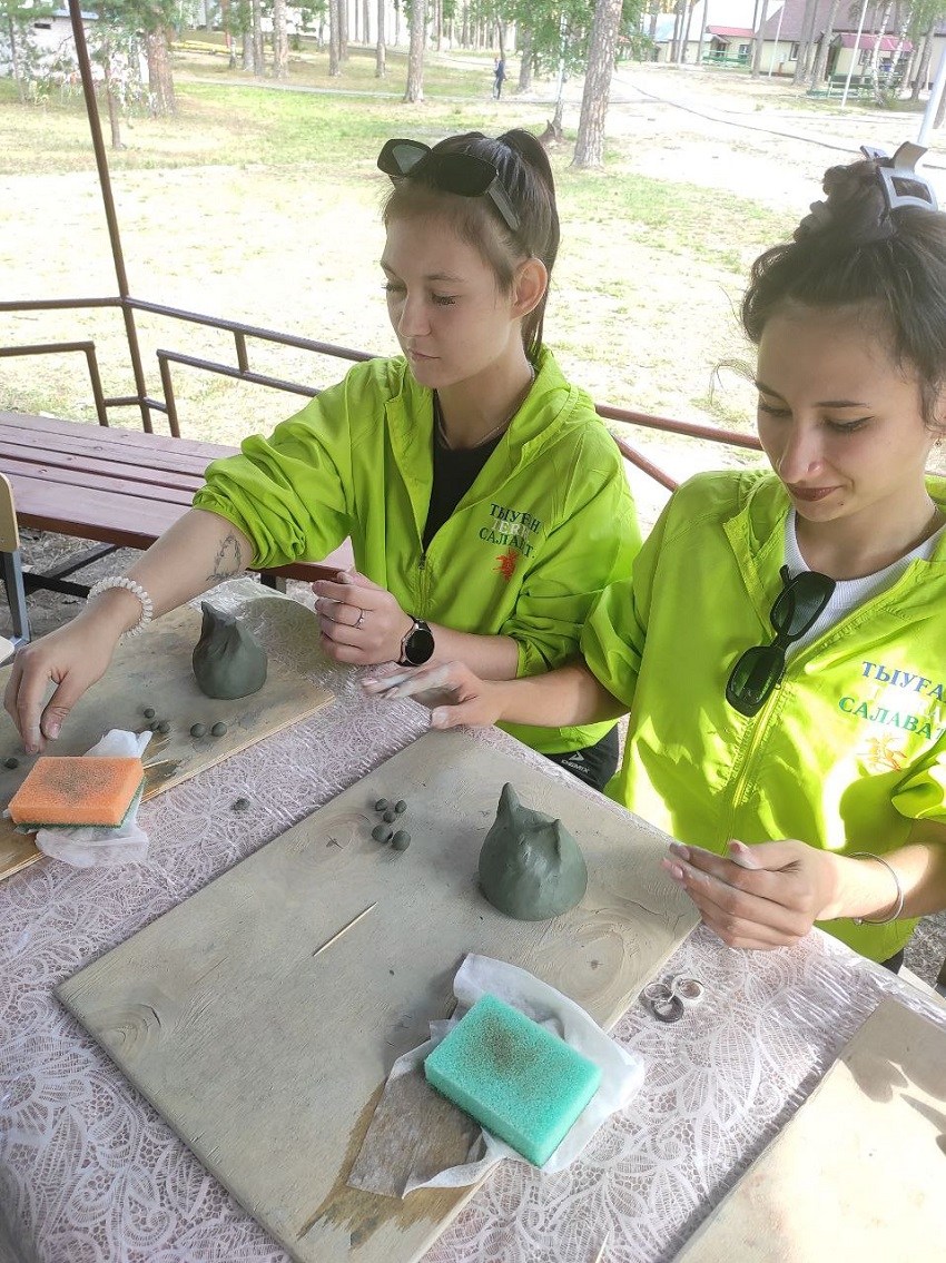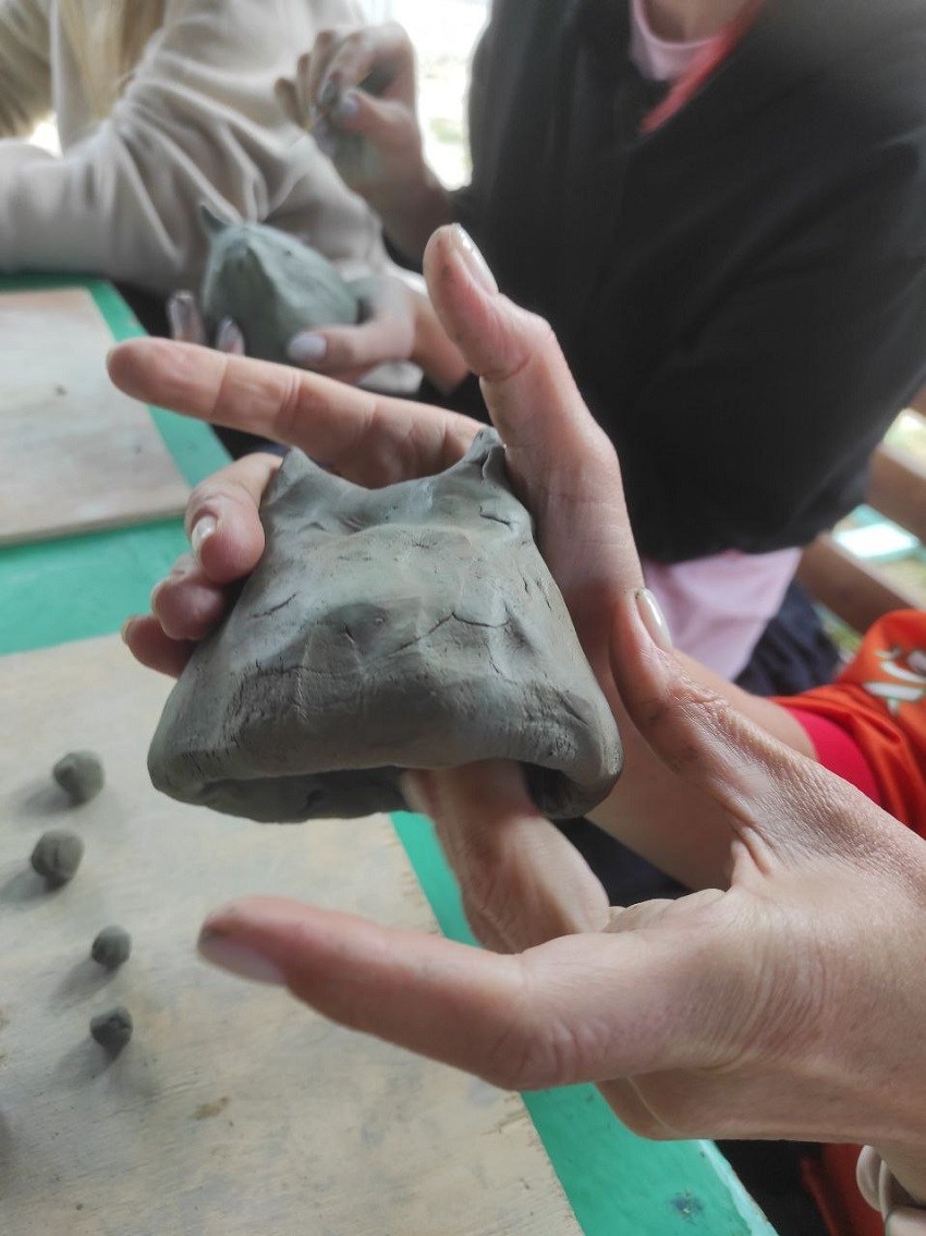 Педагоги д.о. Центра Тарасов Михаил Юрьевич и Косова Виталия Геннадьевна рассказали участникам о глине и об истории гончарного промысла. Для них прошел мастер-класс «Волшебная глина», где все желающие попробовали свои силы в выполнении изделия из гончарной глины «Кот».