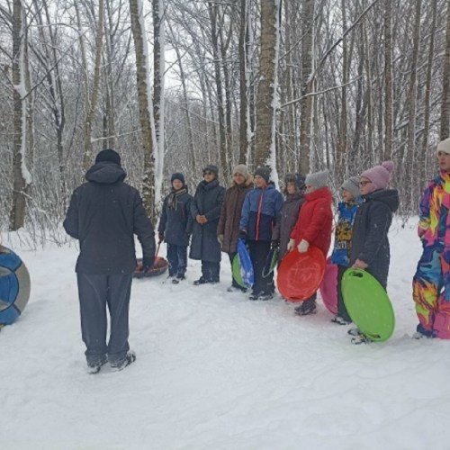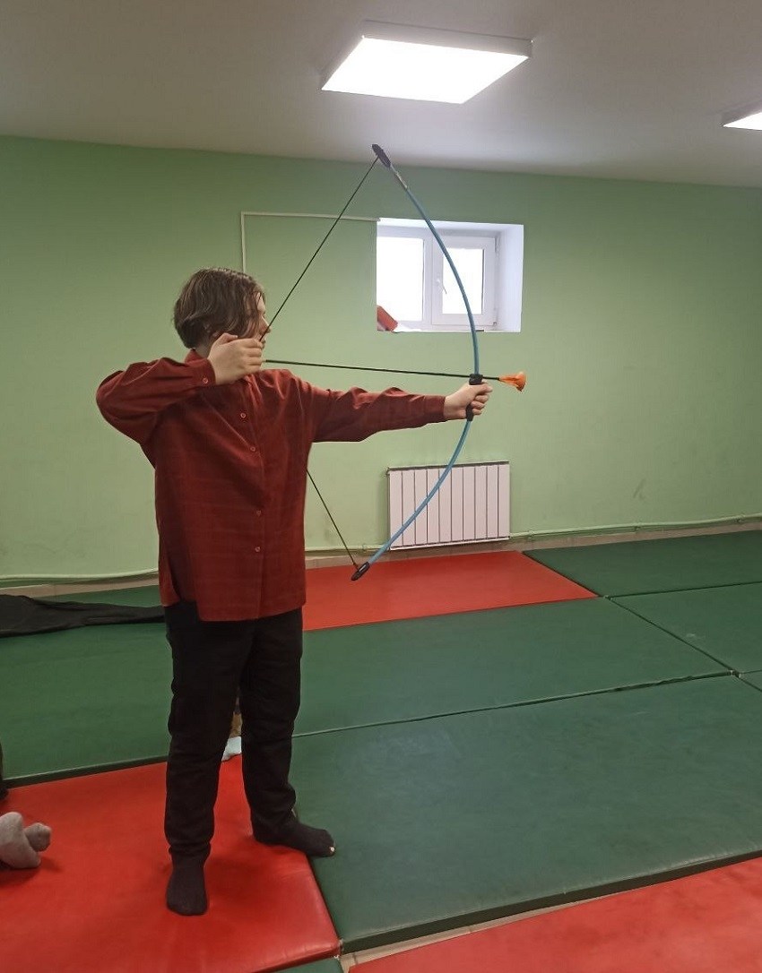 Во второй день, катались с горки на ватрушках и ледянках, тренировались в разборке-сборке автомата Калашникова, упражнялись в стрельбе из лука.