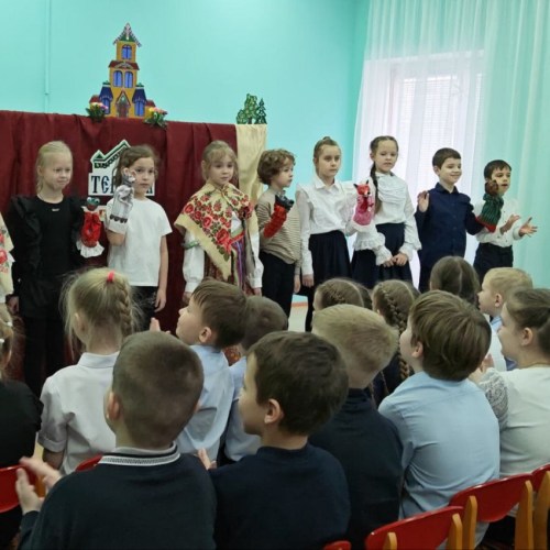 12 февраля младшая группа театра кукол «Фантазия» (пдо Дмитриева Е.В.) на базе МБОУ СОШ №69 провела три премьерных показа спектакля «Теремок». Зрителями в этот день стали воспитанники детского сада, учащиеся начальных классов, учителя и родители артистов.